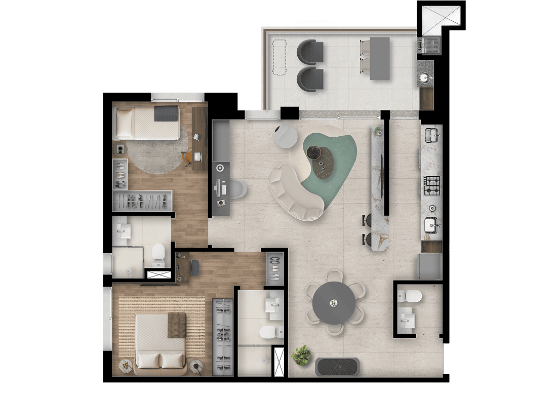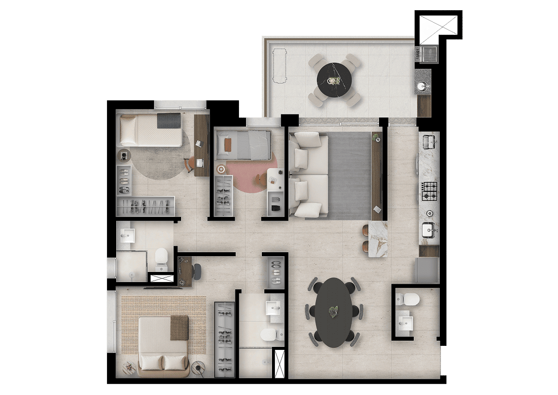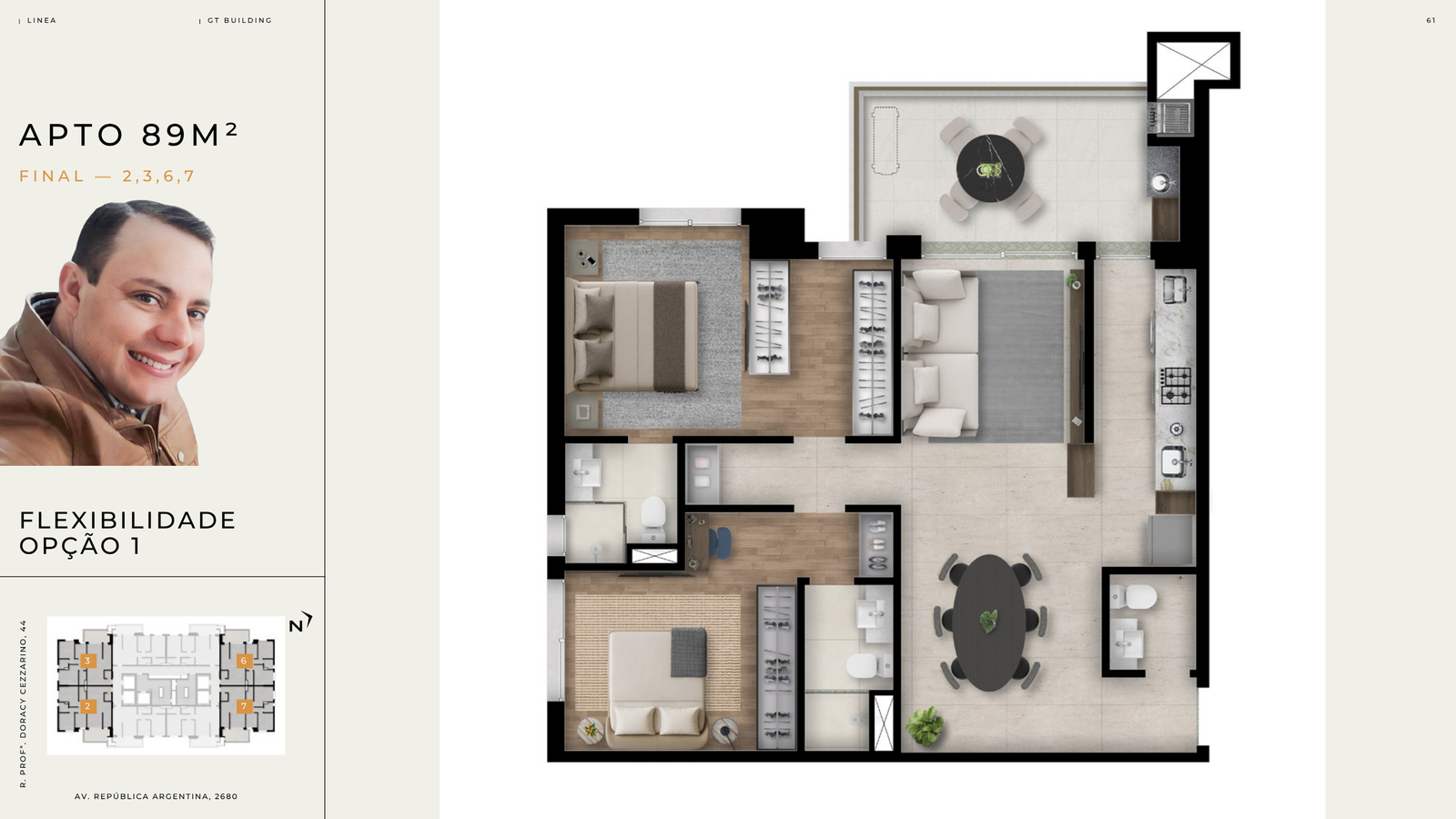 2 á 3 dormitórios, sendo 1 ou 2 suíte